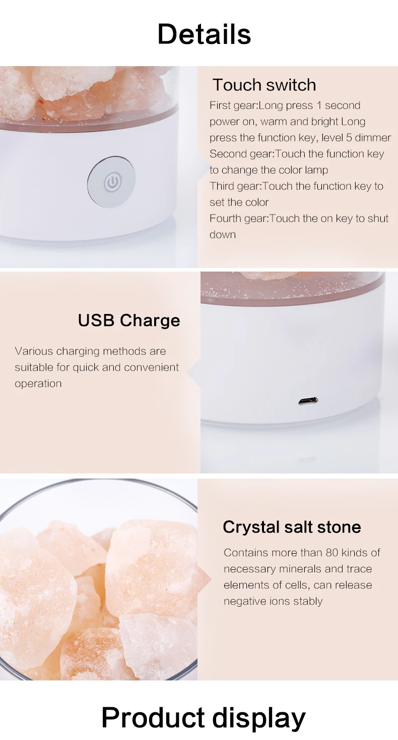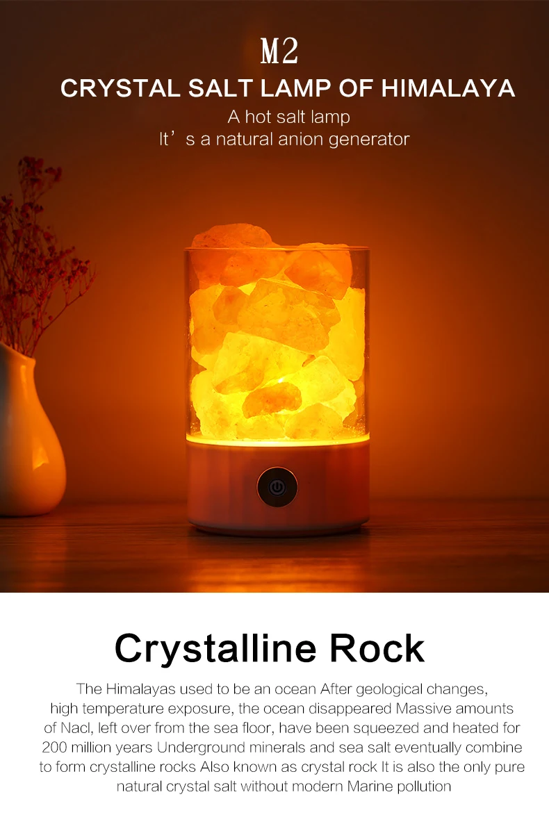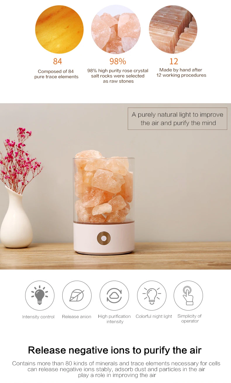 Himalayan salt lamps crystal pink natural handicraft Dimmer switch rock salt night light Usb Office Air Purification Salt Lamp