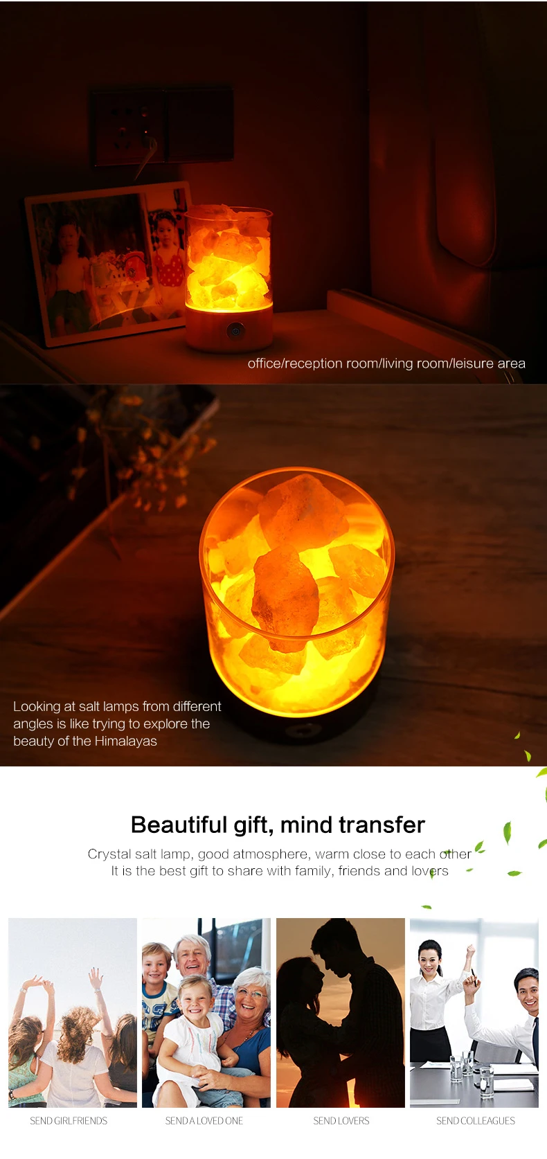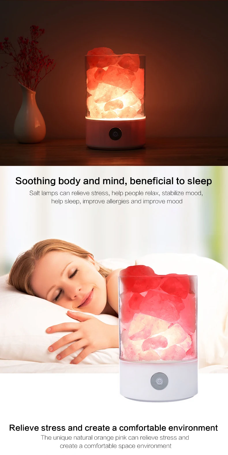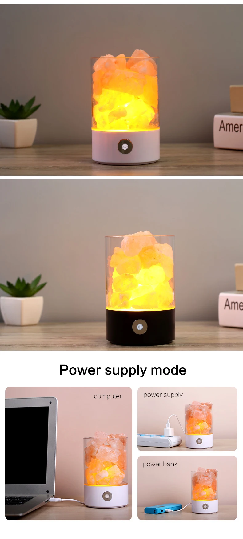 Himalayan salt lamps crystal pink natural handicraft Dimmer switch rock salt night light Usb Office Air Purification Salt Lamp