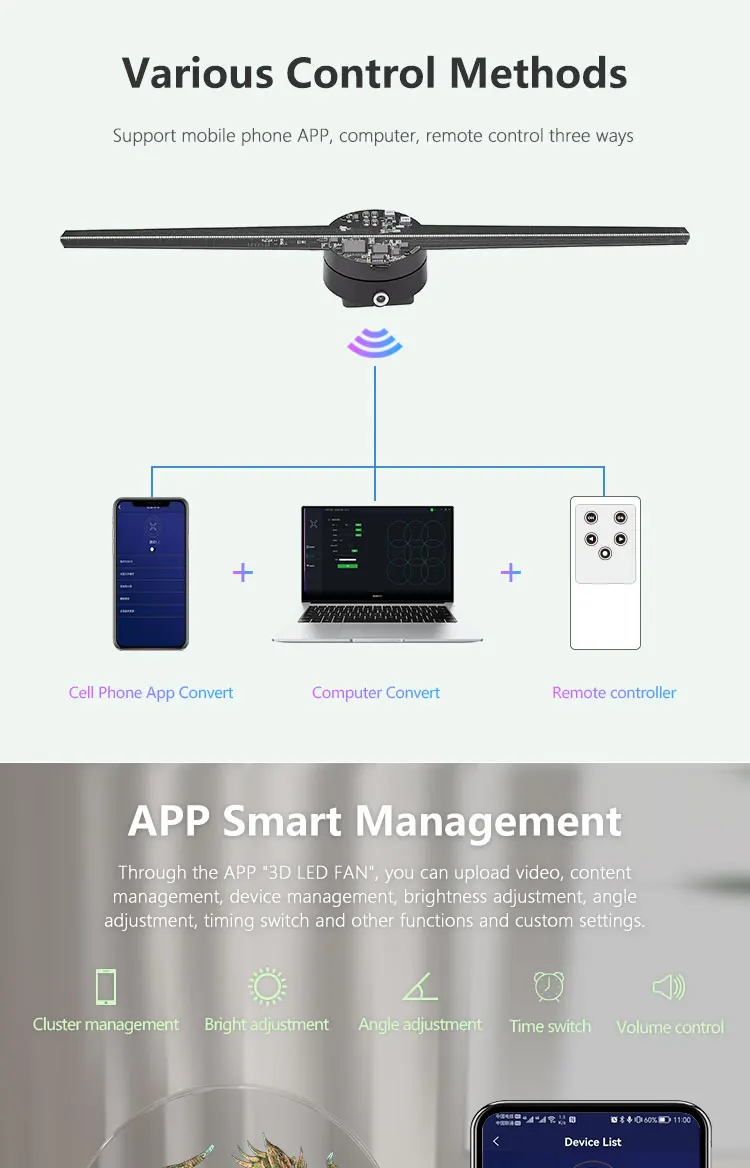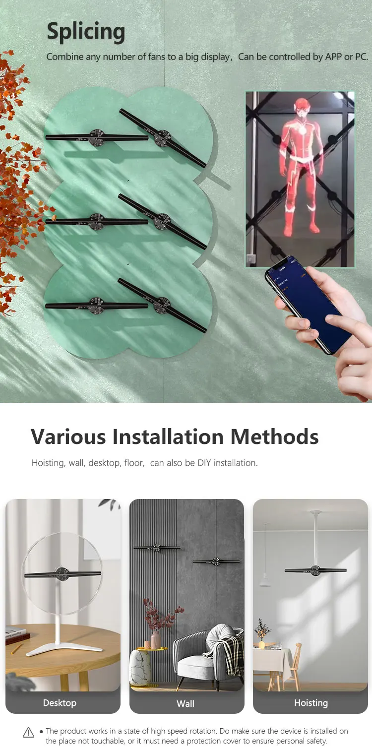 Holograma 3D Ventilador Holografico 3D Holographic Fan Projecteur linux Multimedia Wireless Projectors Hologram Projector