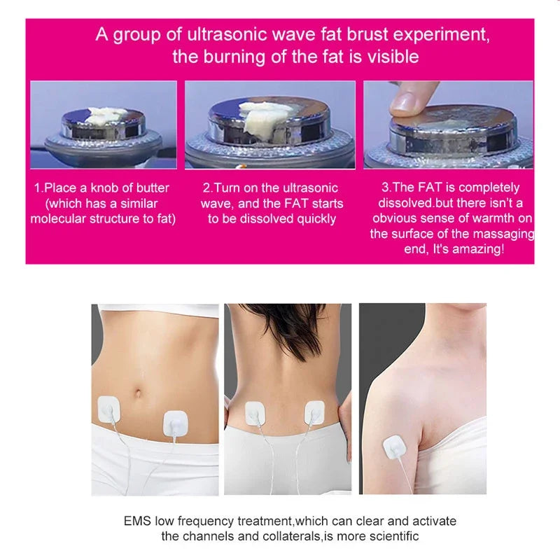 * [Fat Burning & Firming Skin]: Fat remover machine not only can shape body but also can lift face. The sonic at 3000000 times per minute of fine vibration ( WILL NOT Get Hot and Vibrate) can break fat and increase blood circulation, plays a role in losing fat, sliming body, lifting face ,tightening skin.