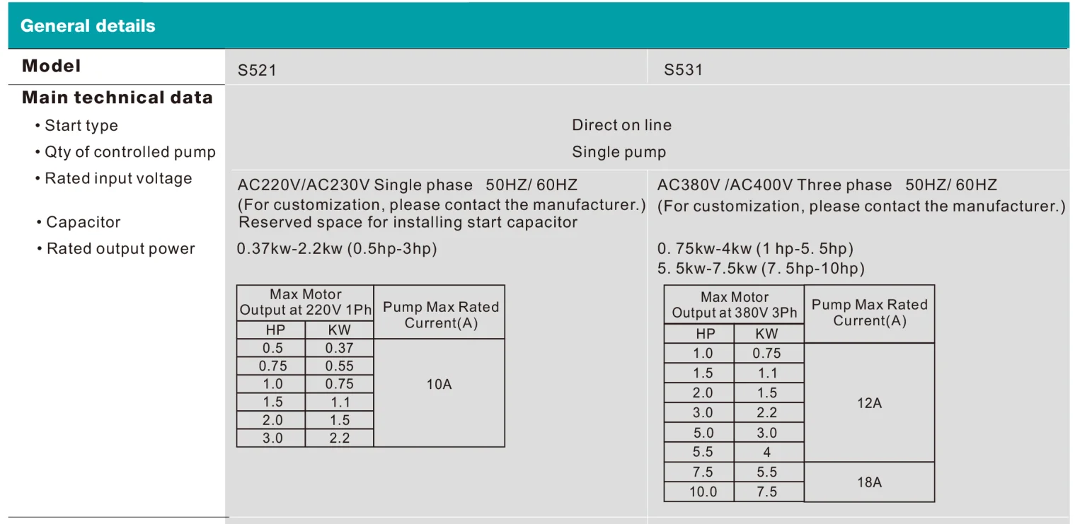 HOP S531 AC380/50HZ 0.75-4KW Intelligent water pump control box 0.37-2.2KW with air switch for deep well pump