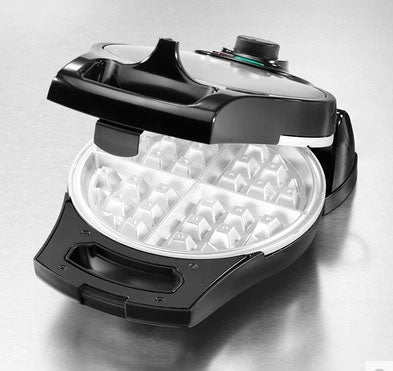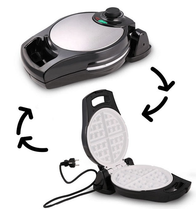 - The rotary feature of this flip waffle maker ensures even baking on both sides