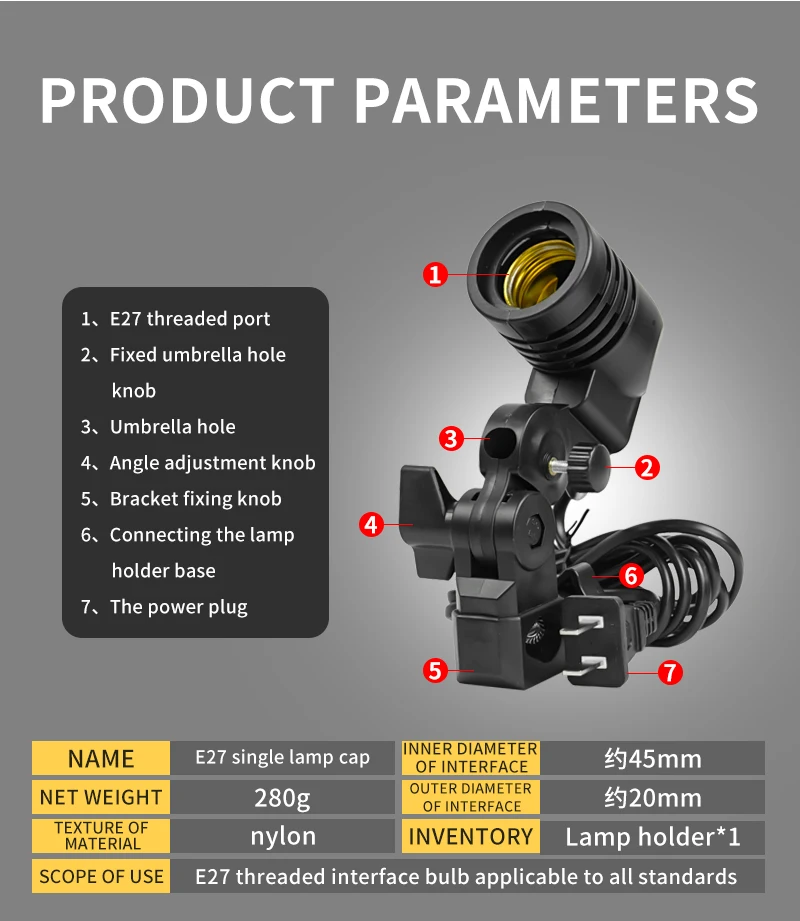 Hot E27 Single Lamp Holder Photo Studio Accessories Photography Accessories for Photography