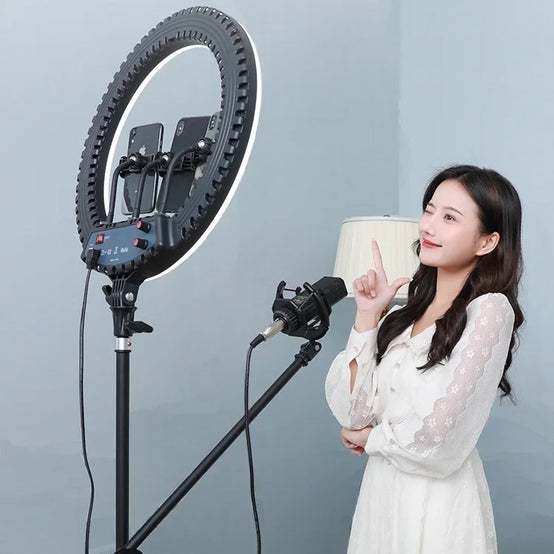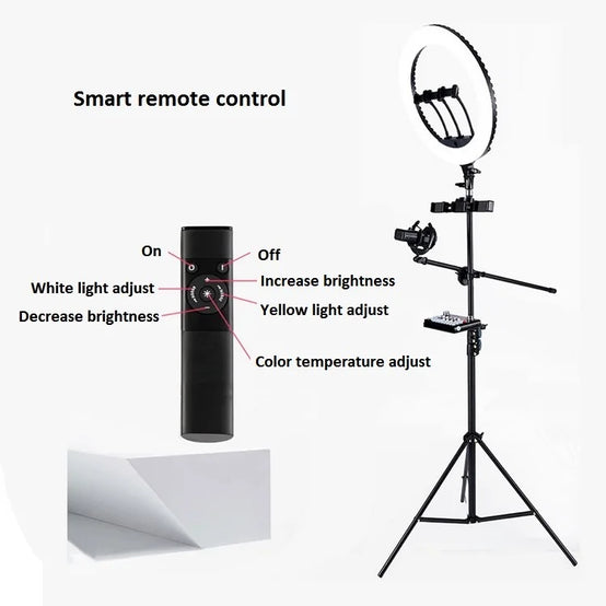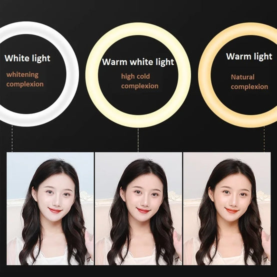 This professional led ring light can meet your different shooting environment. Led ring light can brighten your skin and enhance the three dimensional face. It is mainly used for fill light of webcasting, live broadcast, selfie lighting, beauty lighting, makeup lighting: