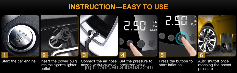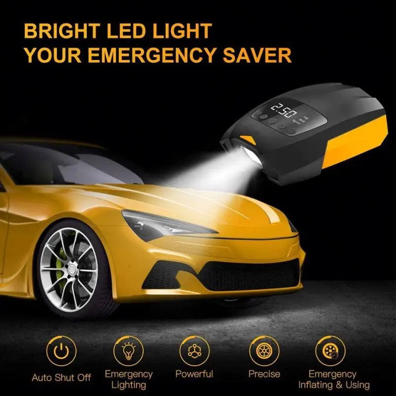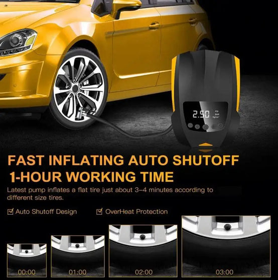 valuable time. Once reaching the preset pressure, this car tire inflator will auto shut off.