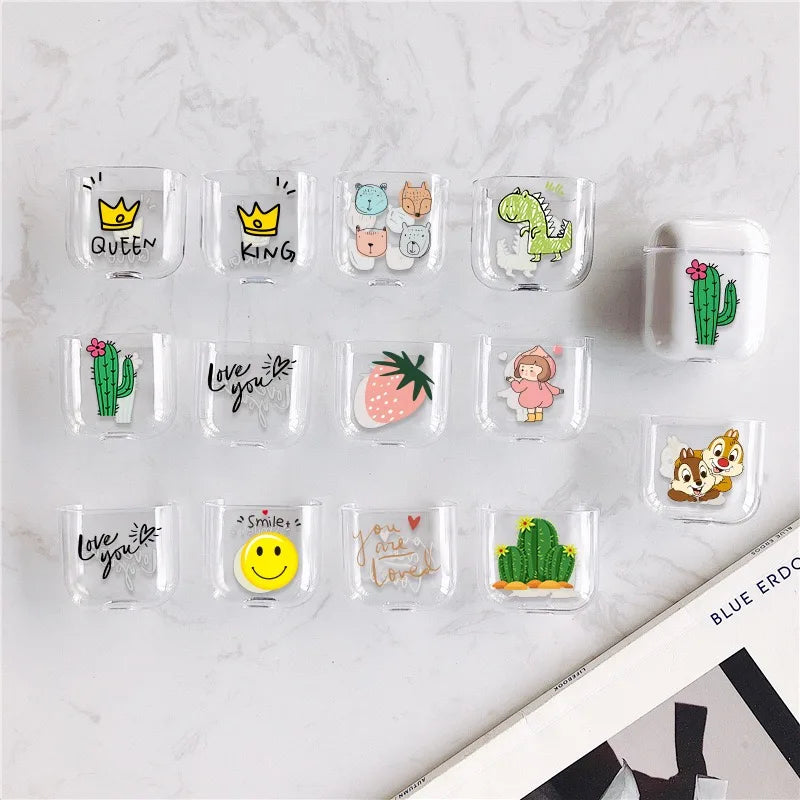 Hot Sale air pod case cute couples pattern clear hard PC cases protective cover For AirPod Case Compatible with AirPods 1 and 2