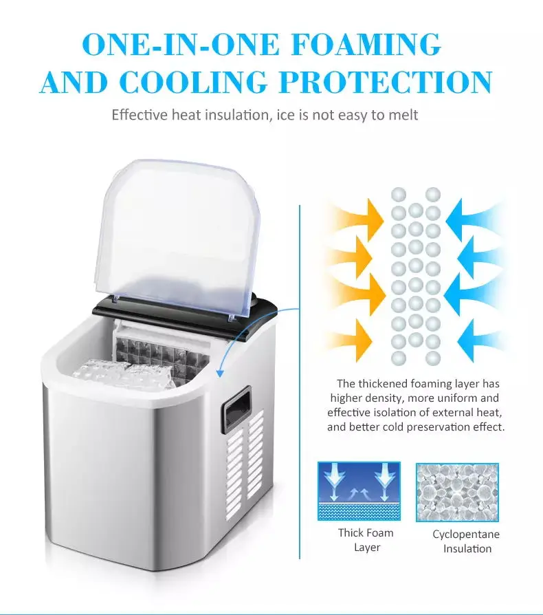 4. Push-botton operation,LCD indicator light,hummmer presents the working condition,the ice machine is easily operated.