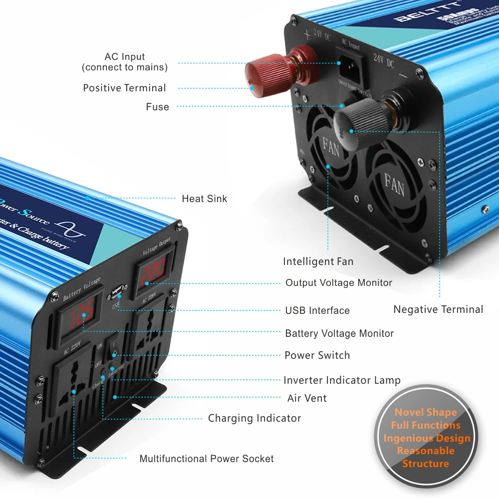 BELTTT Hot Sale Off Grid Solar Inverter Pure Sine Wave 3000w 3kw 12v 24v 48v dc to 220v 230v ac UPS Inverter Battery Inverter&Converter