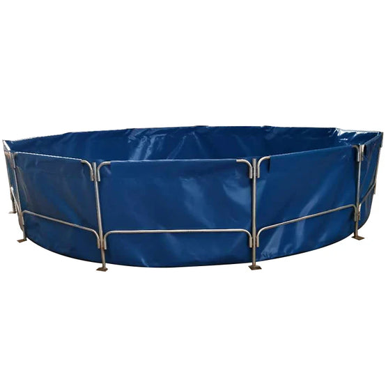 This is Easy Setup Collapsible PVC Tarpaulin Fish Tank Farming Backyard Round Fish Tank, It is a combination of high-tech PVC composite fabric and demoutable hard PVC plastic tube round shap with good stability;simple operation and easy management; only 1-2 people can be deployed quickly, and customized drain size is easy to change the water.small in folding size, easy to transport and store best choice for small-scale fish farming, backyard fish farming etc..