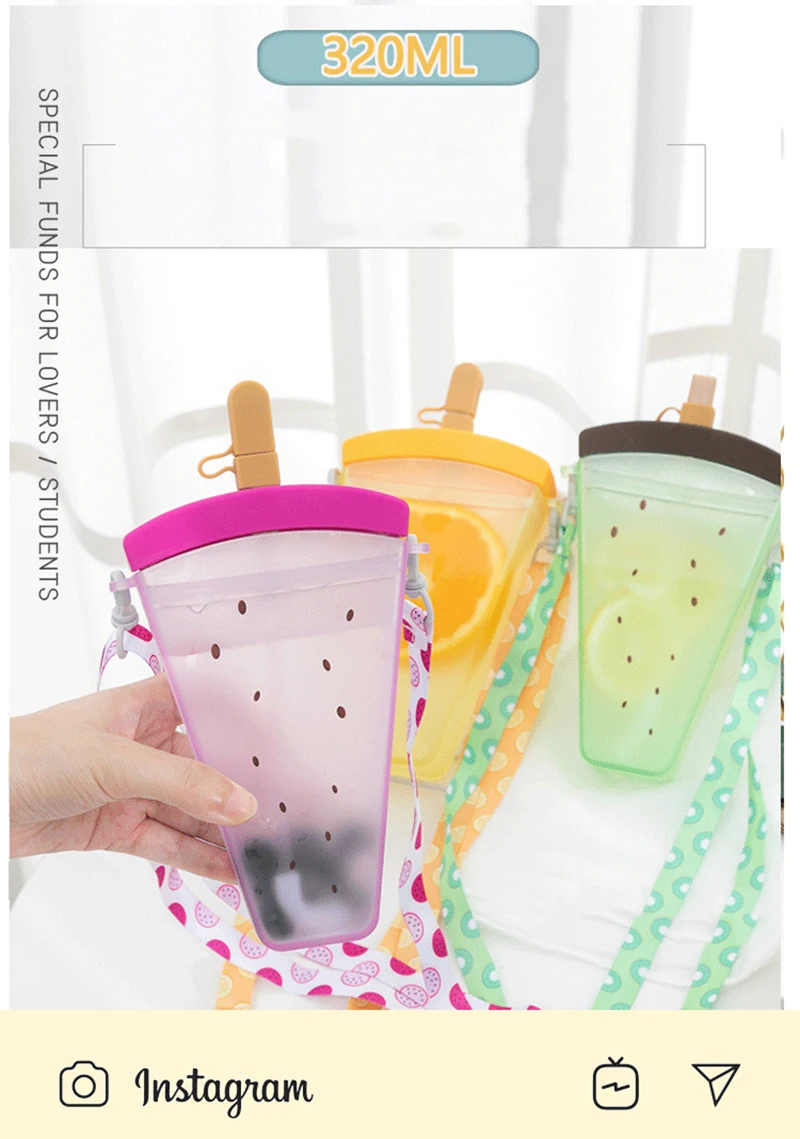 Hot Sale Portable Creative Plastic Water Bottl Watermelon Shape Water Bottle Kids Girl Cute Ice Cream Water Bottle