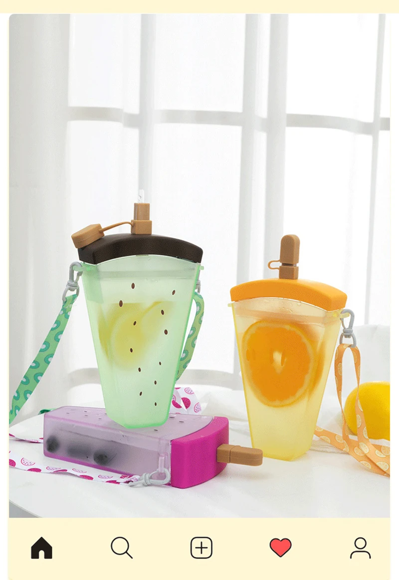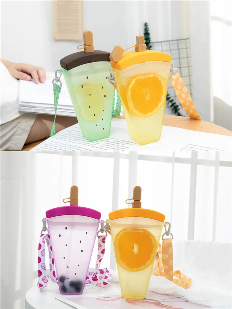 Hot Sale Portable Creative Plastic Water Bottle Watermelon Shape Water Bottle Kids Girl Cute Ice Cream Water Bottle