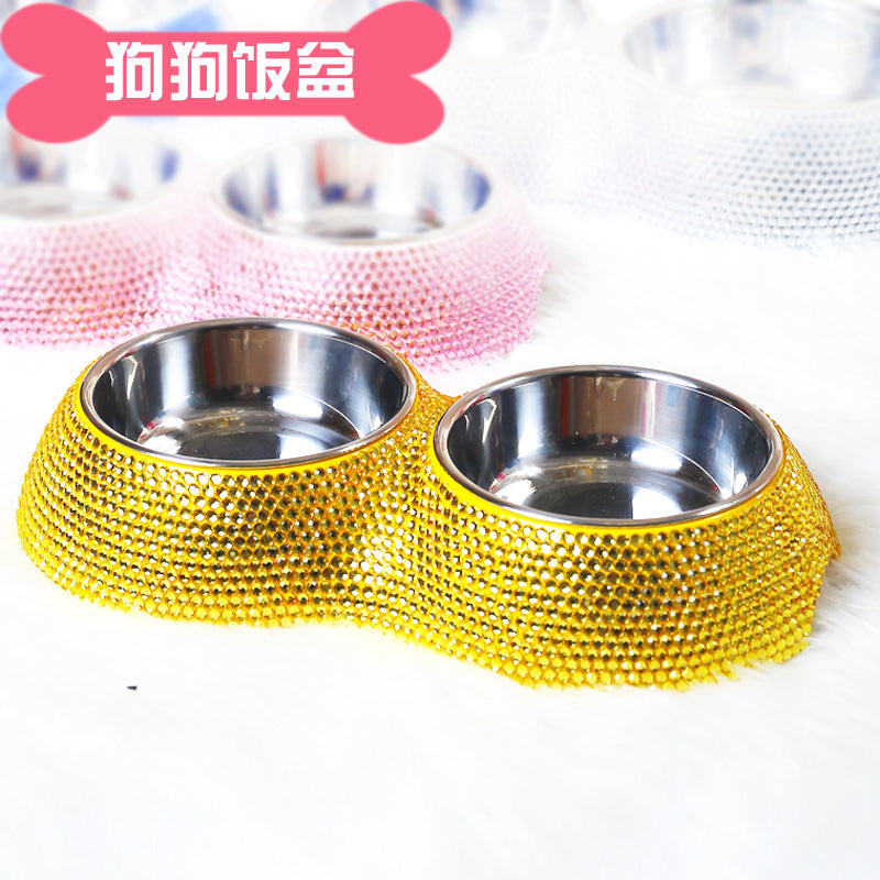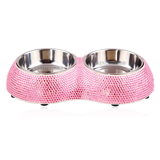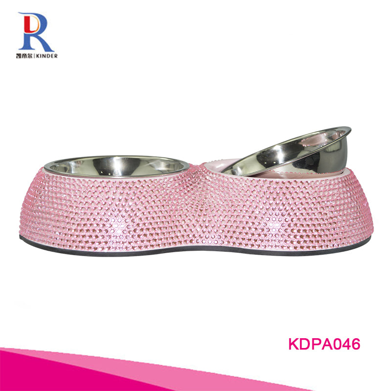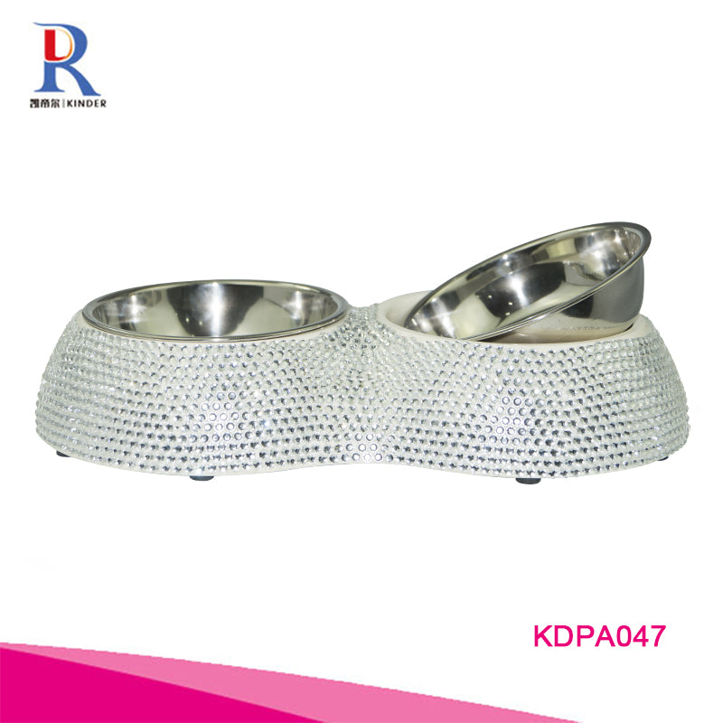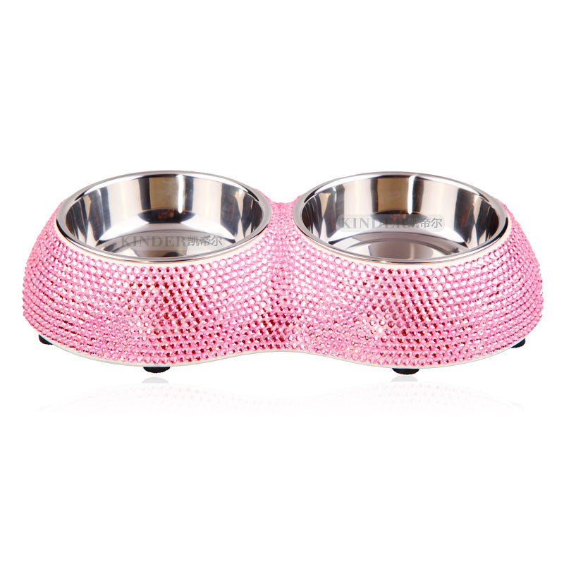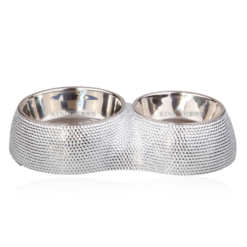 hot sell pet accessory stainless dog feeder luxury pet feeder crystal dog bowl