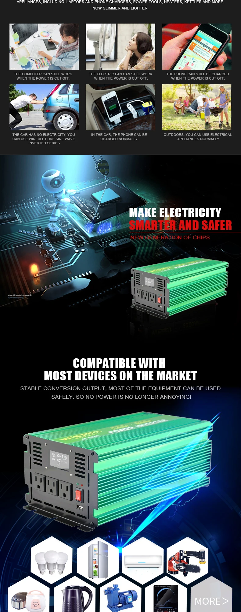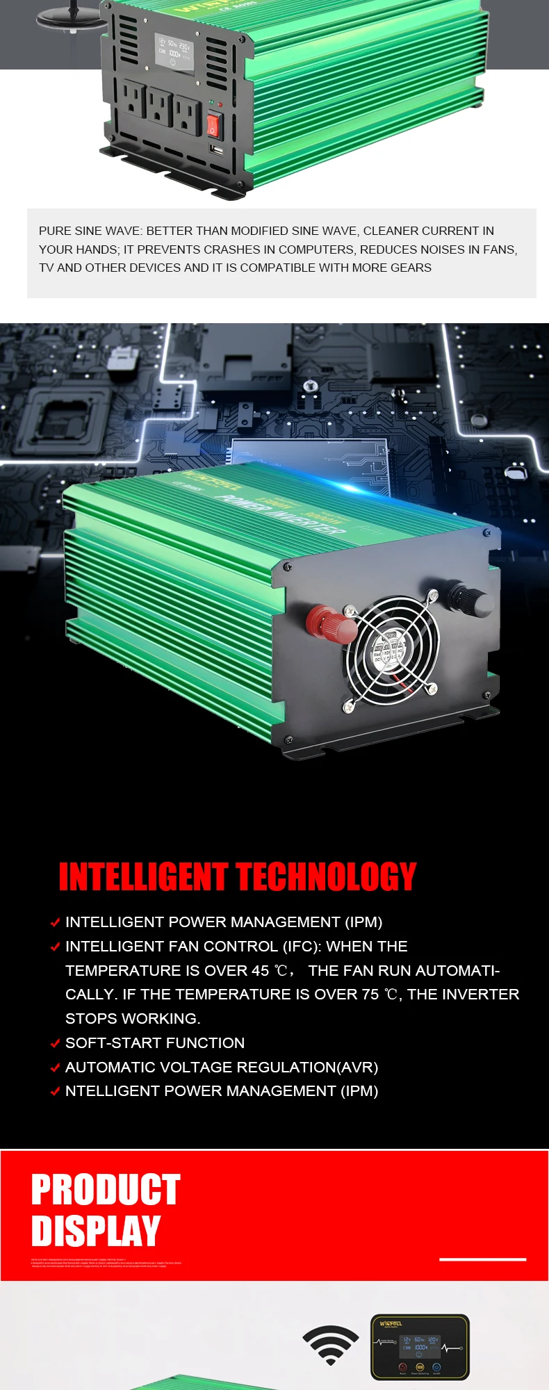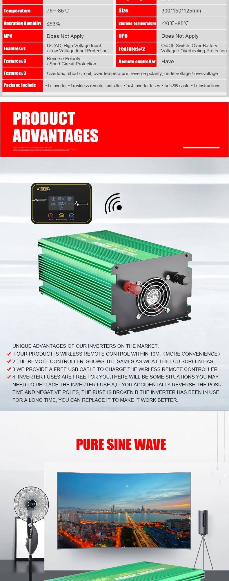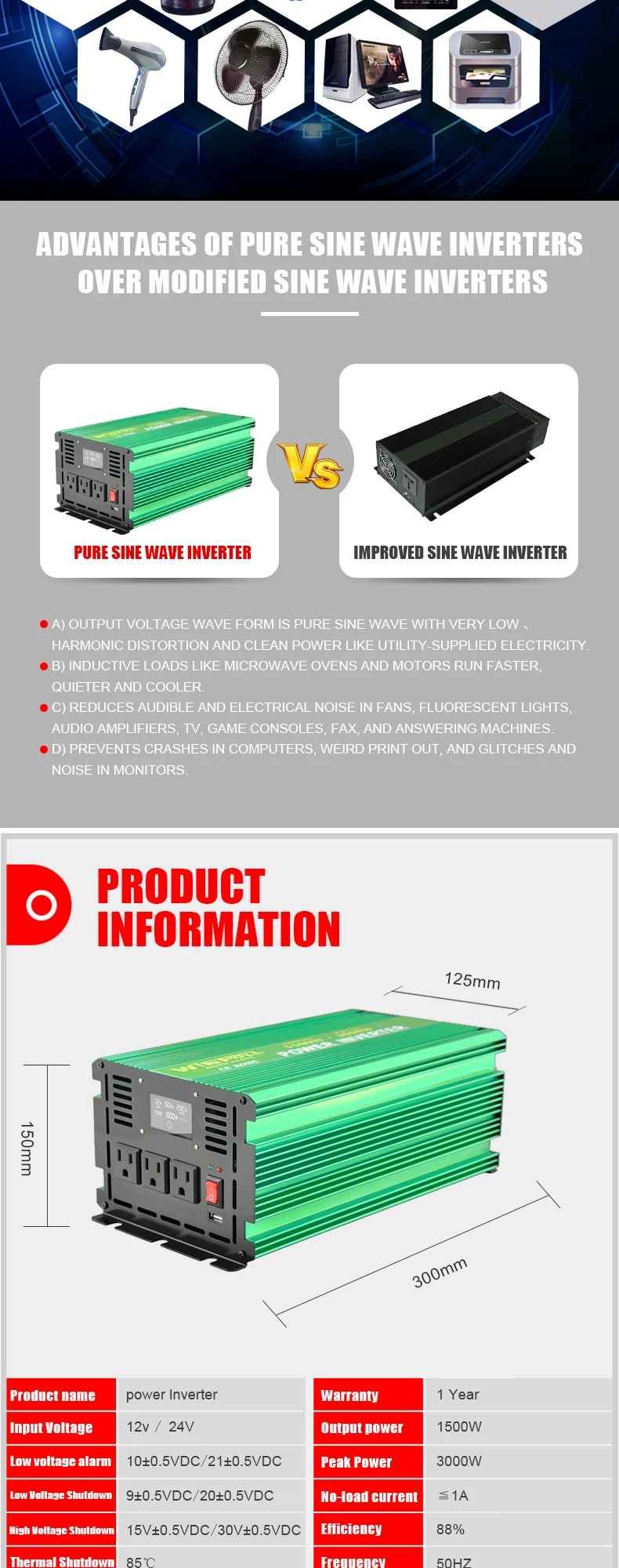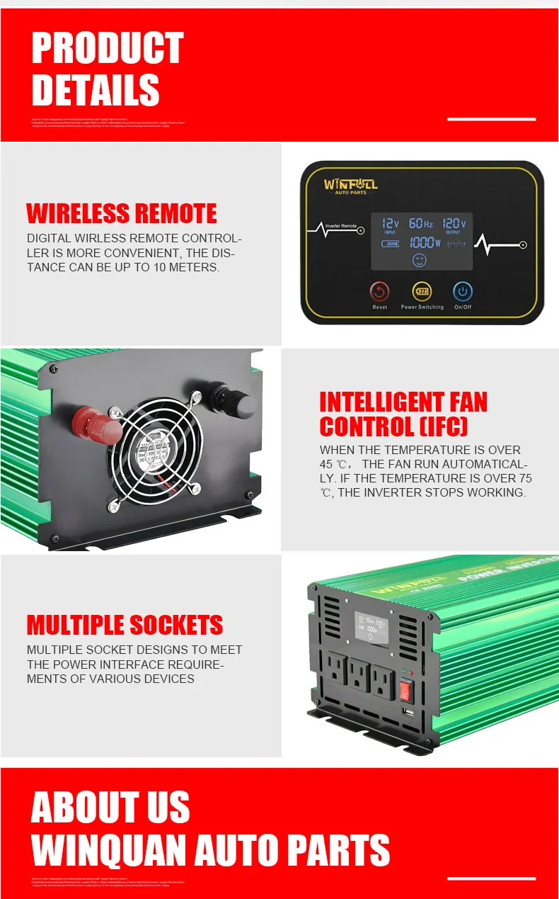 Hot-Seller Wireless Remote 12V 24V Power Pure Sine Wave Inverter 1500W Car Inverter