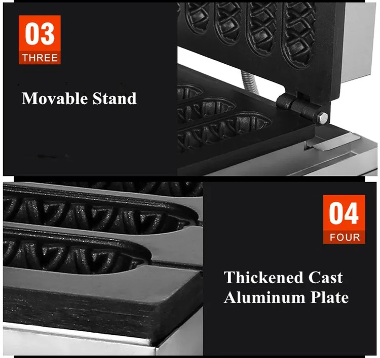 This model hot dog waffle machine is also called: Muffin Hot Dog Bar Machine, French Muffin Hot Dog Bar Machine, French Hot Dog Machine, Philippine Hot Dog Bar Machine, Hot Dog Bar Baking Stove, American Hot Dog Bar Machine.It sells well in Southeast Asia,Taiwan and some European countries, with low prices and excellent quality.