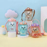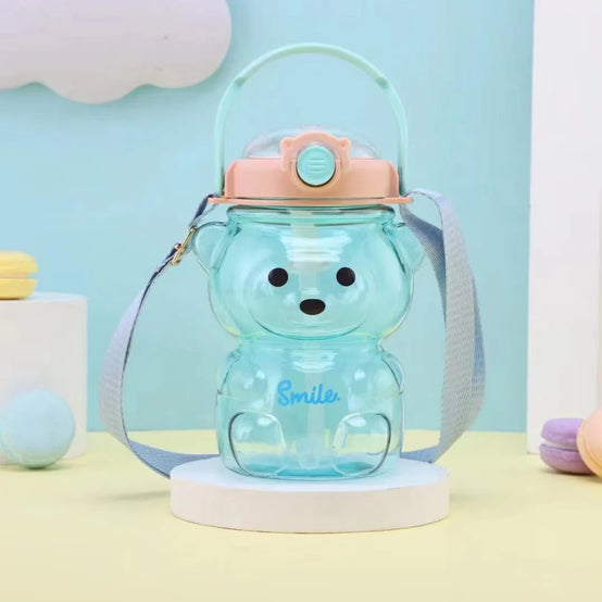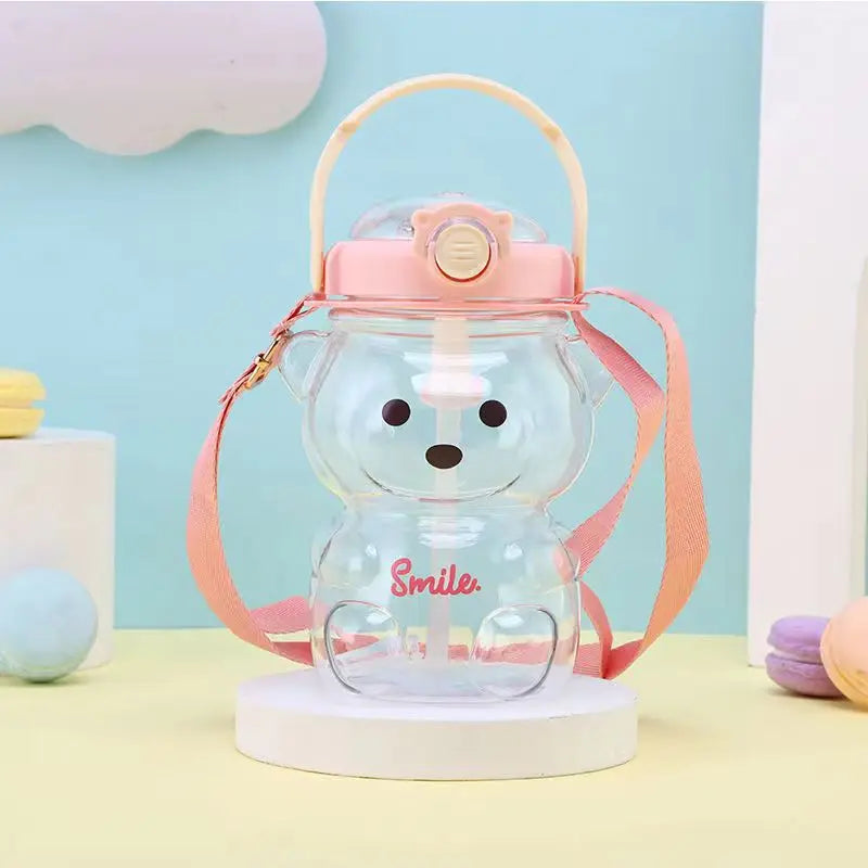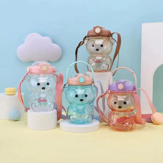 Hot selling creative cute cartoon portable kawaii bears children's students bpa free reusable plastic water bottles with straw
