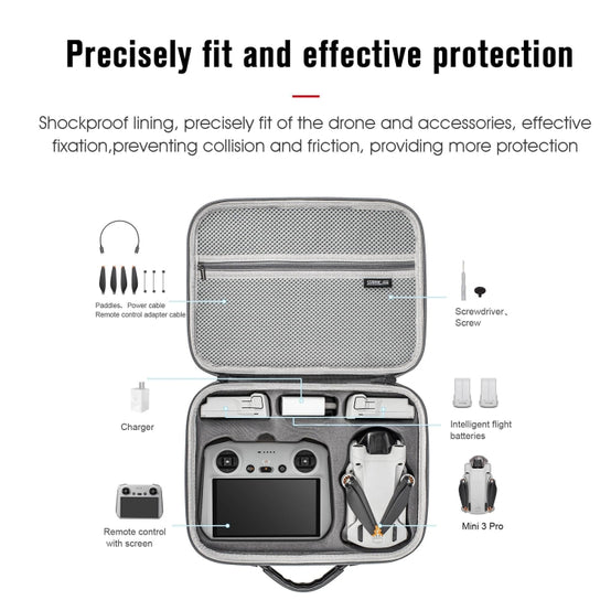 1. Specially designed for DJI Mini 3 Pro, precise mold opening, small size and large capacity, can accommodate remote control with