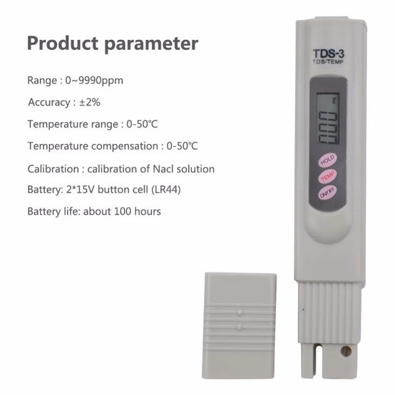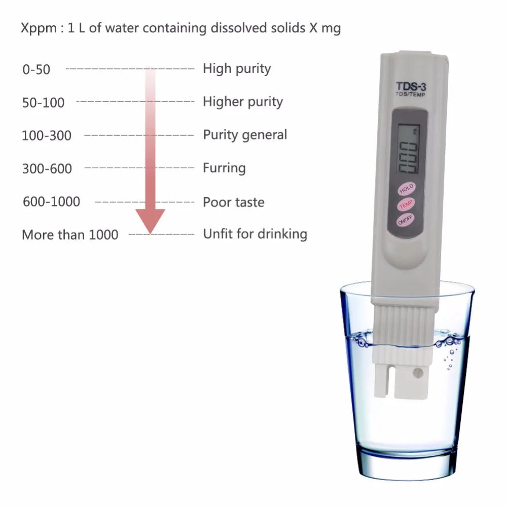 - Ideal for using in the following situations: drinking water water filters hydroponics aquariums food&coffee pools&spas. TDS range: 1-9999PPM/mg / L.