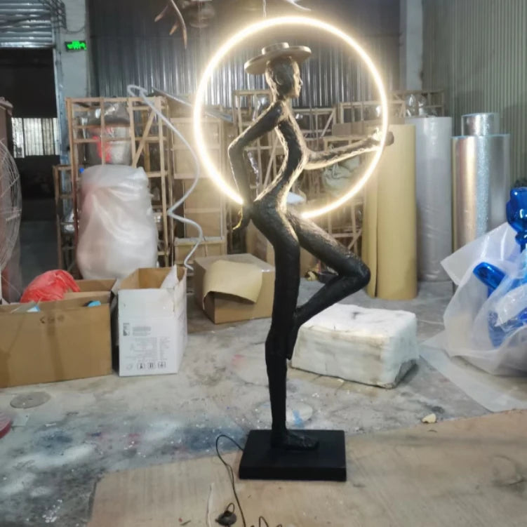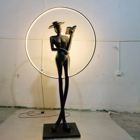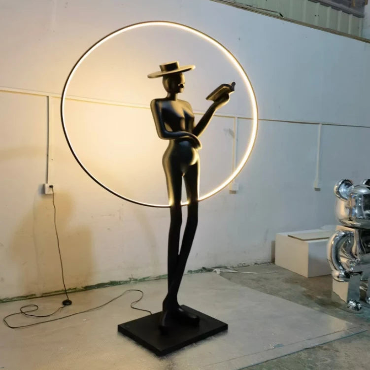 Hotel Lobby Human Sculpture Floor Lamp Decor Villa Living Room Stand Statue Lights Showroom Aureole Elegance Lady