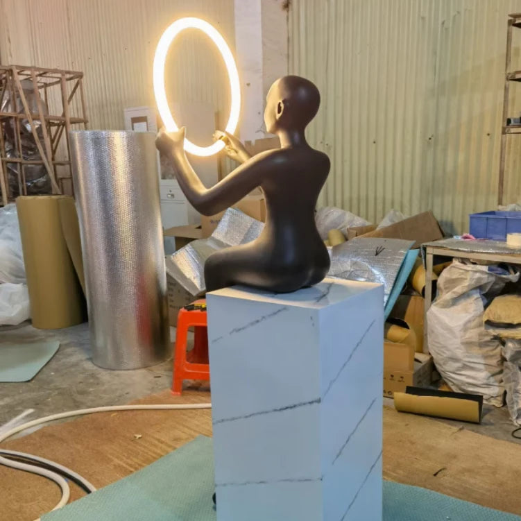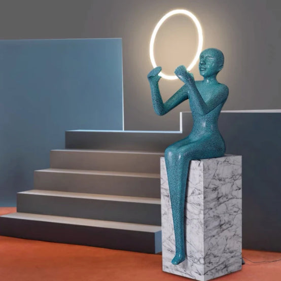 Human Sculpture Model Floor Lamp for Room Sales Office Soft Decoration Art Gallery Shopping Mall Hotel Hall Creative Sitting Floor Light Standing Reading LampSuitable for Living Room Mall Hotel Human Body Sculpture Lighting