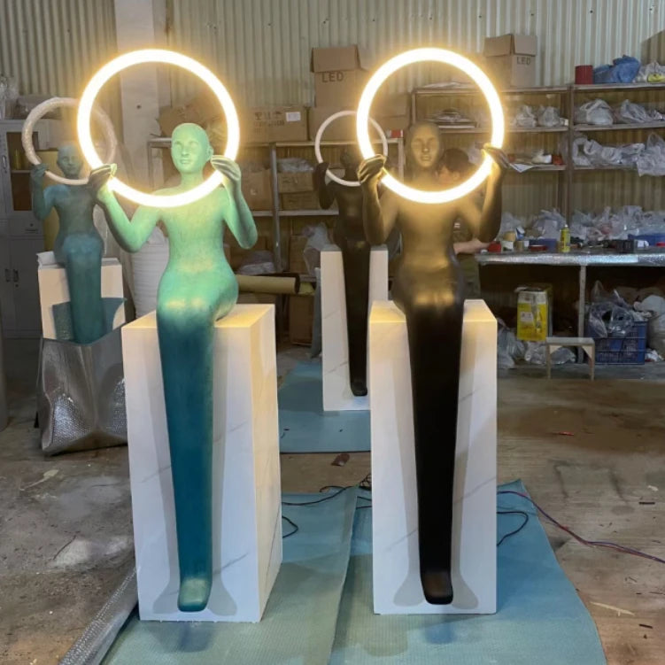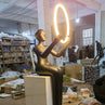 Hotel Lobby Sculpture Floor Lamp Living Room Decoration Showroom Sacred Statue Light Aureole Silver Sculpture Lighting