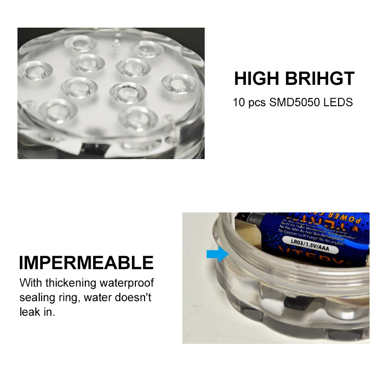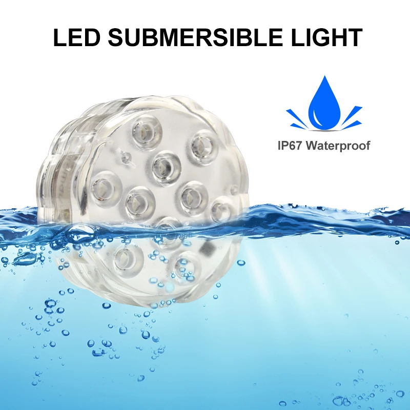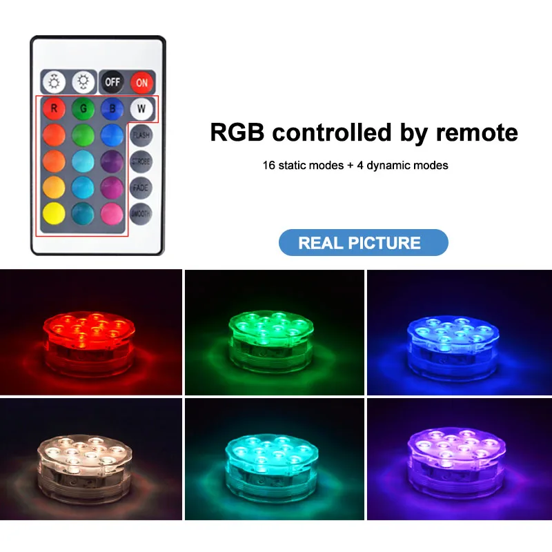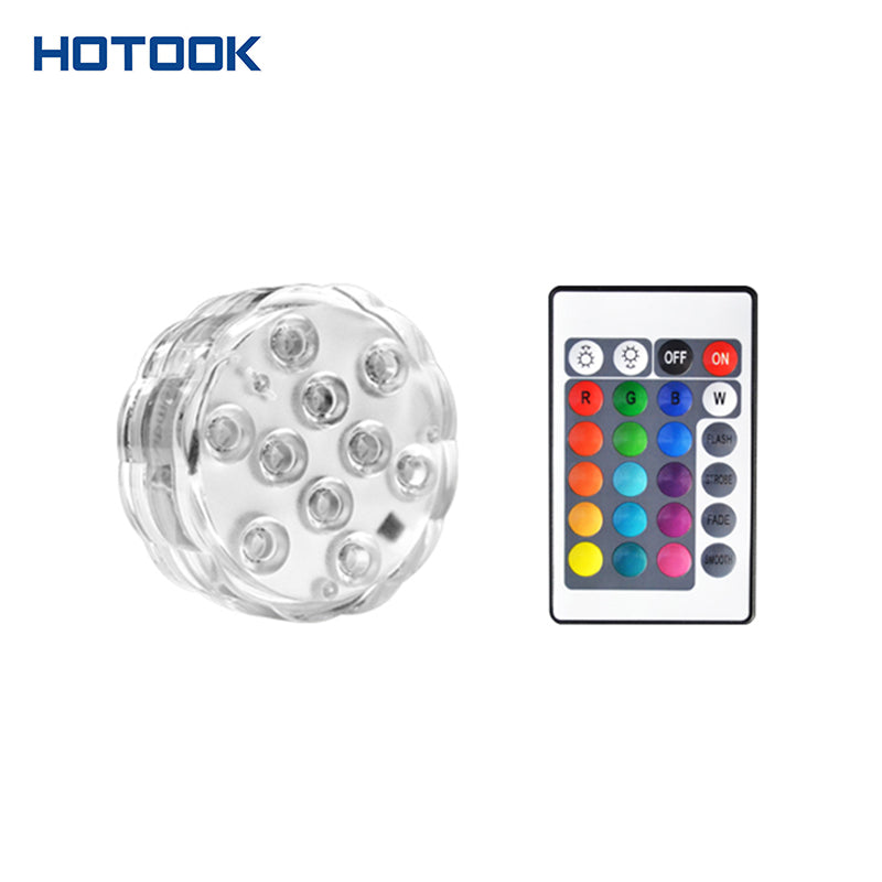 HOTOOK 10 LEDS Flower Vase Decoration Remote Control Aquarium RGB Waterproof Submersible LED Pool Light