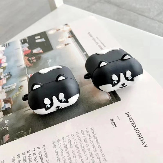 Huskie Dog for Airpods Case for Charging Box Wireless Earphone Cover Case Silicone Headphone Protective Cover Case for AirPods 2
