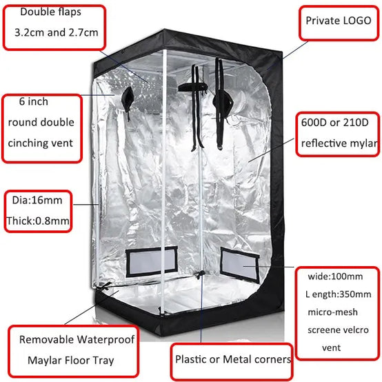 Hydroponic 150x150x200cm Indoor Grow Tent Green House Grow Box