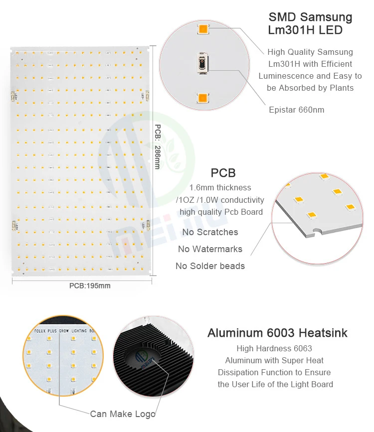 1. 1pcs high effiency 288v3 plus board(252pcs top bin Lm301H and 36pcs Epistar 660nm)