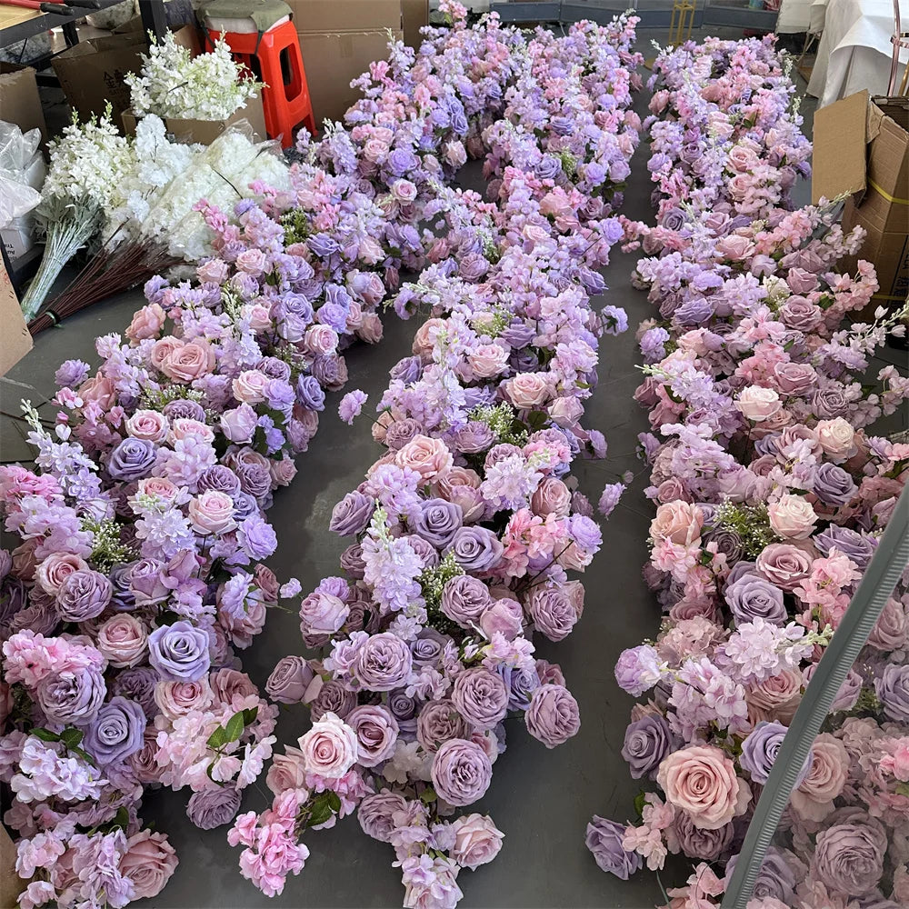 IFG Wholesale Artificial Table Purple Flower Centerpiece Row For Wedding Decorations