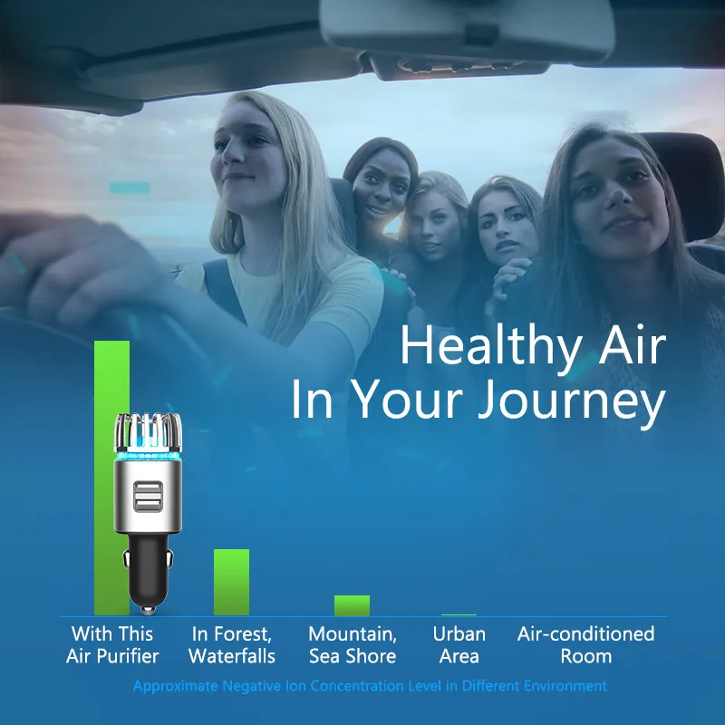 Negative ion exists in waterfalls, forests, seashores in high concentration. Besides effectively purifying the air and preventing you inhaling the air pollutants, it has positive effects on human's physical & mental health.