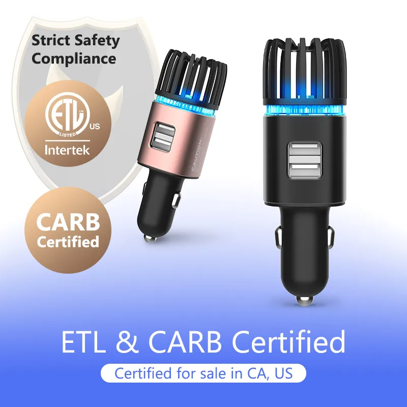 Car Charger Air Purifier JO-6291 Series has been CE, RoHS, Fcc certified. JO-6291 ETL Version is additionally with ETL and CARB certificates. United States Design Patent NO. US D878534 S China Design Patent No. ZL2017303783243 | China Utility Model Patent No. 2017212917203