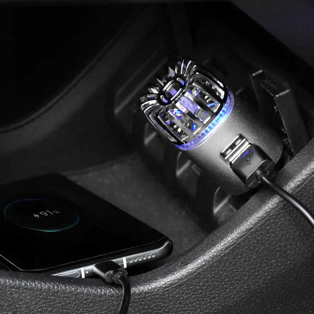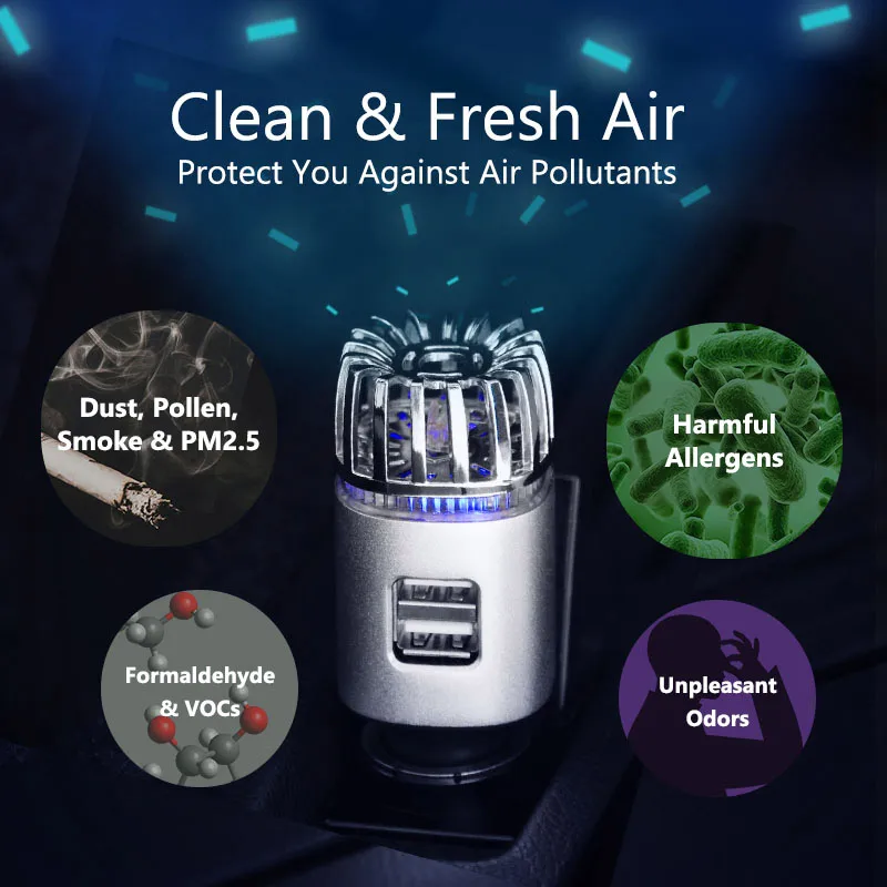 It glows gently to help you instantly locate the air purifier and USB ports, even while driving at night.