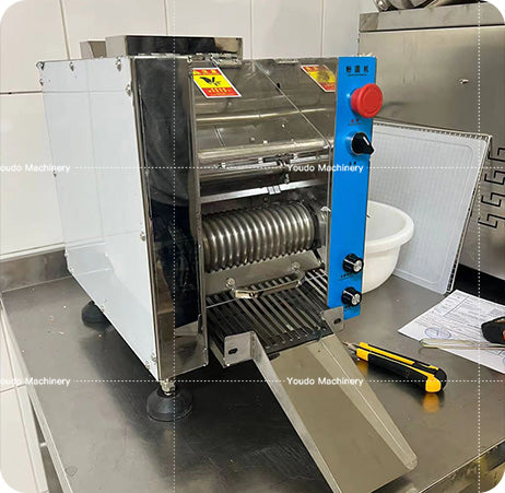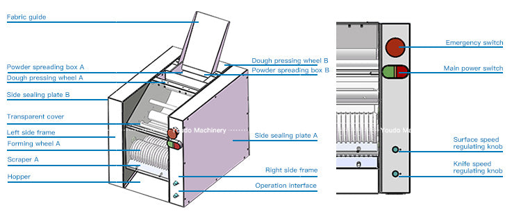 After the empty machine runs, fill the dry powder boxes A and B with glutinous rice flour (or rice flour, flour, preferably not starch). After the pressing wheel is evenly coated with dry powder, knead the dough to grow to 20cm, directly pat the 5cm round column slightly and place it vertically in the middle of the fabric bucket, and turn the (cutter speed regulating knob) to the left as fast as possible; [Face speed regulating knob] Adjust to a proper speed: subject to the fact that each piece of material cut falls into the forming wheel and is rounded to form a circle.