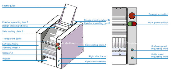 As long as the dough is put into the feeding port, it can be automatically rounded and shaped when the machine is started; The small opening connected with the feed inlet is a dry powder inlet to prevent the round from sticking and deforming.