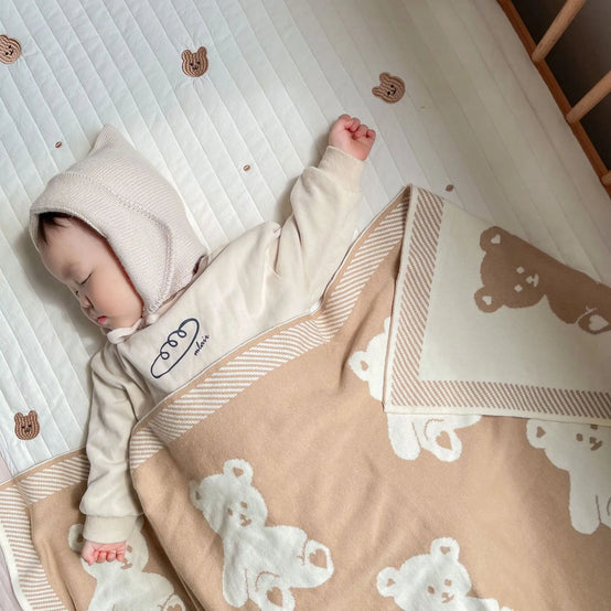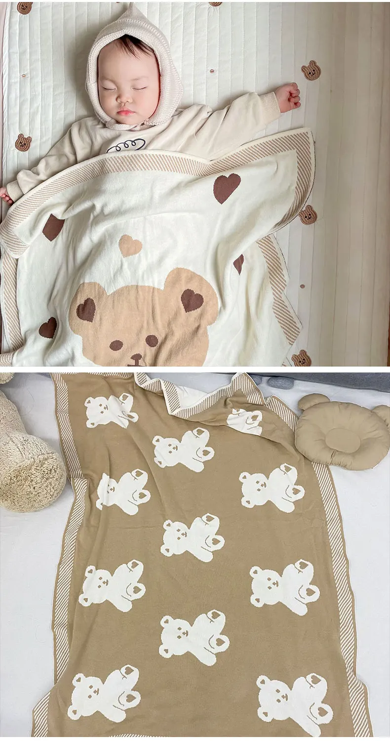 INS Hot Cute Brown Teddy Bear Baby Blankets Double layers Swaddle Blanket For Newborn
