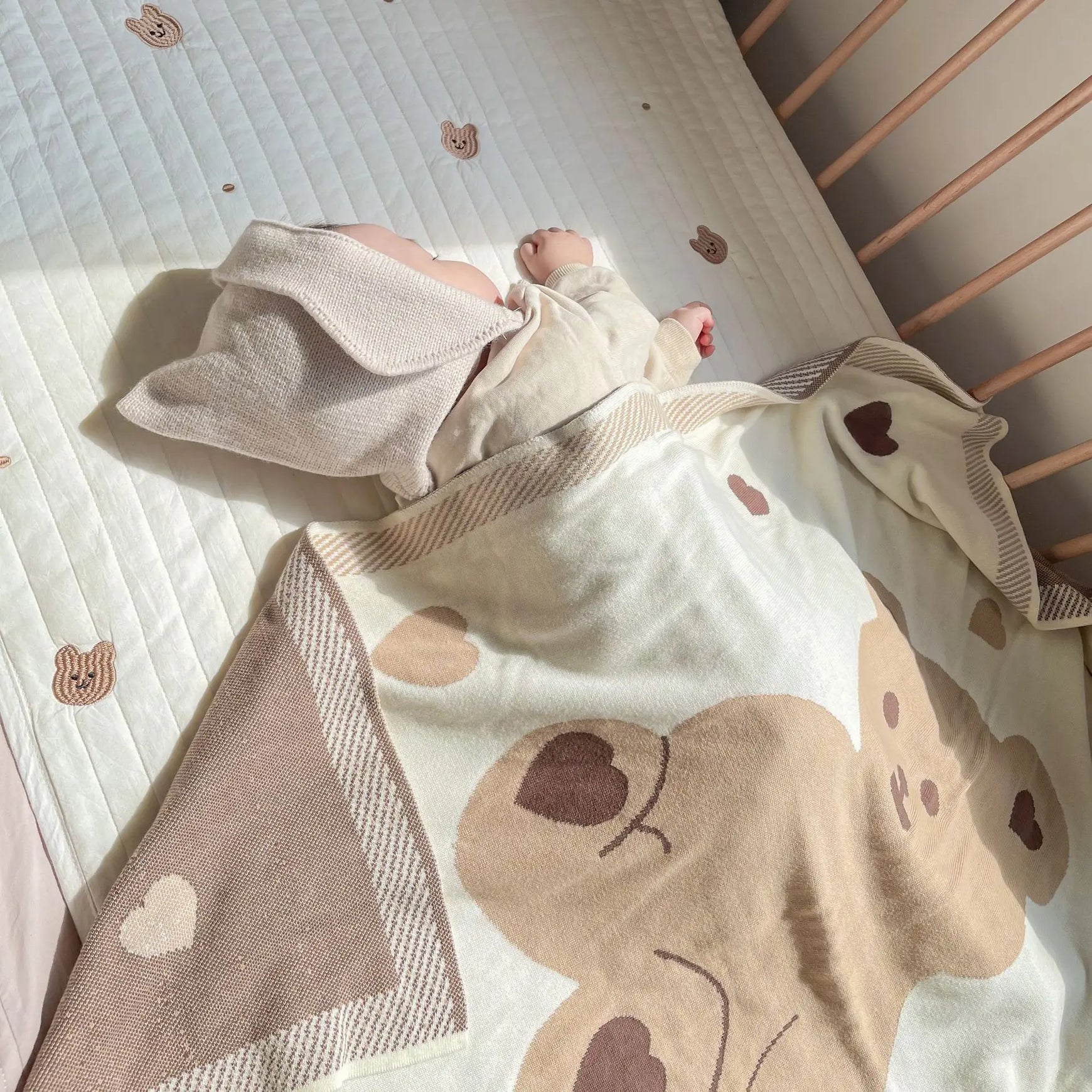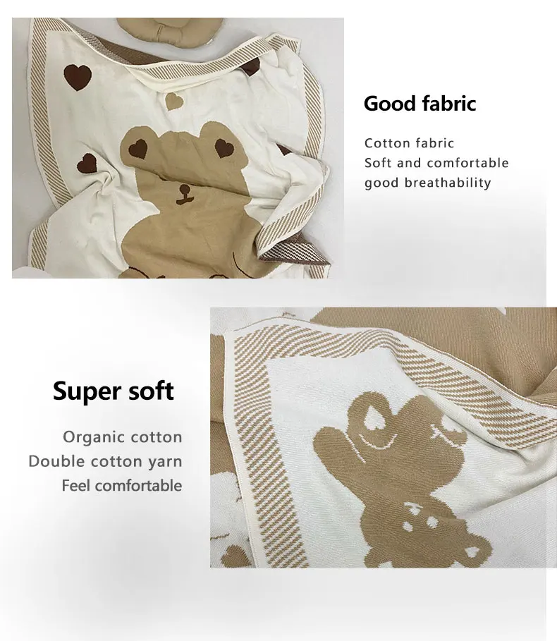 INS Hot baby swaddle blanket 100% cotton Cute Brown Teddy Bear security blanket Super Soft Swaddle Blanket For Newborn