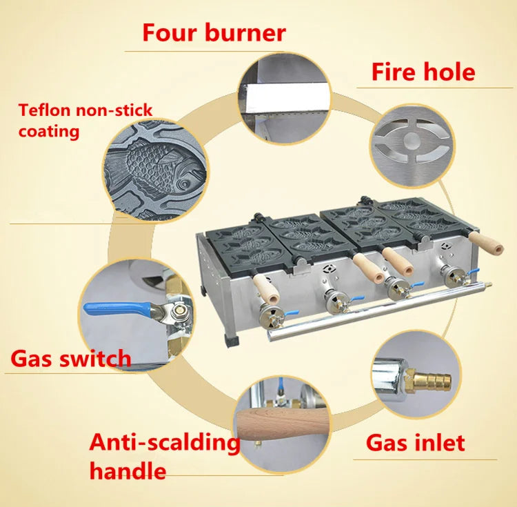 Japanese Pastry Fish Taiyaki Waffle Maker Fish Making Machine/Fish-Shaped Waffle Baking machine Made in China