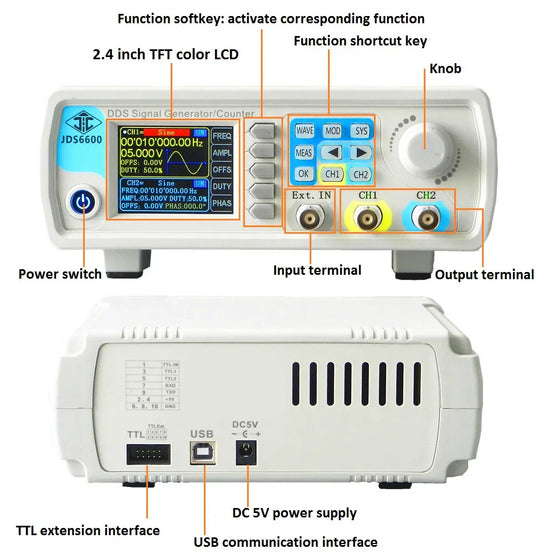JDS6600 15MHZ Series Digital Control Dual-Channel DDS Function Signal Generator Frequency Meter Arbitrary Sine Waveform