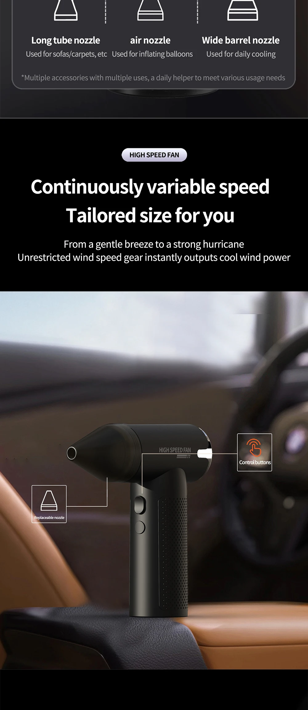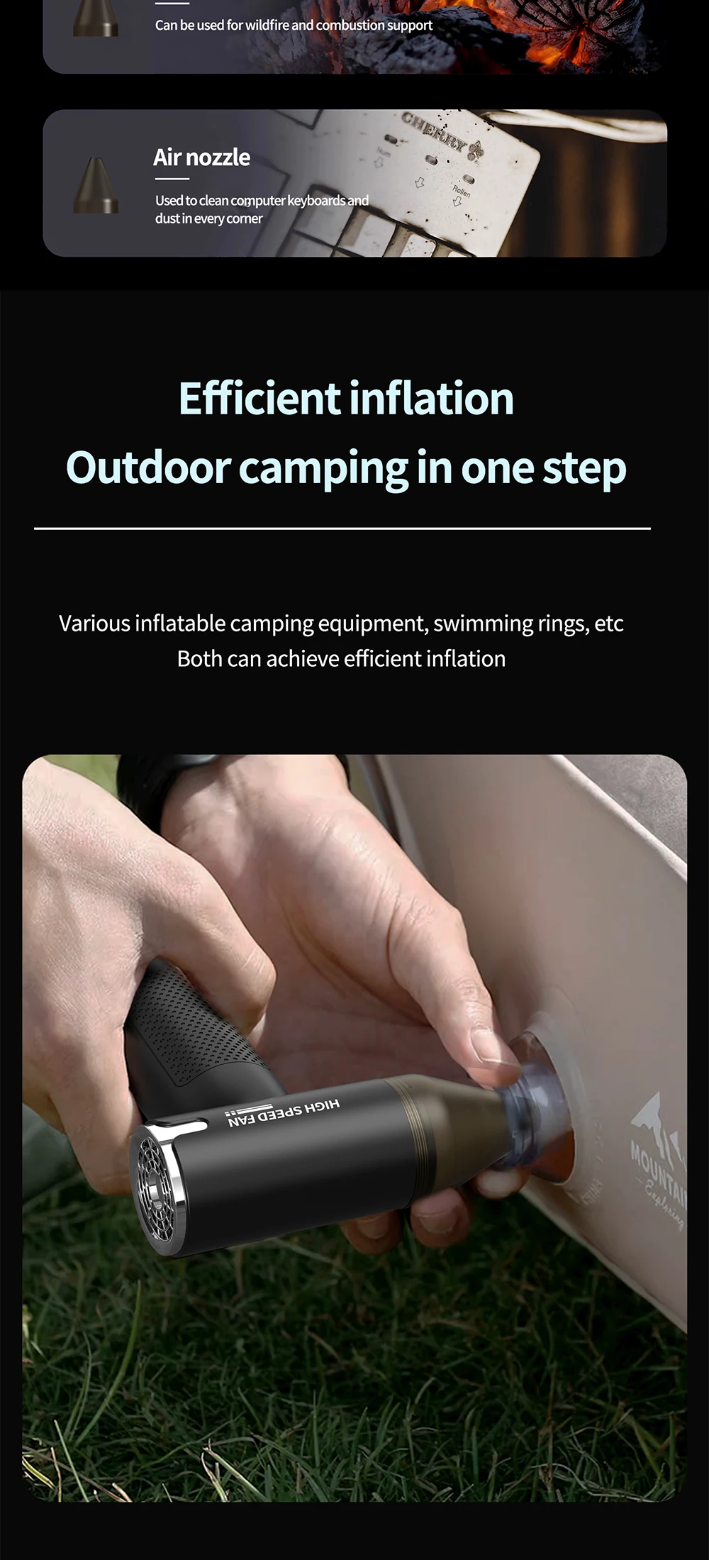 Jet Fan 2 Compressed Air Duster Electric Air Dust Blower Portable Cordless Computer Keyboard Cleaner for PC Car