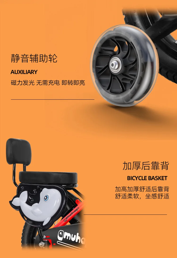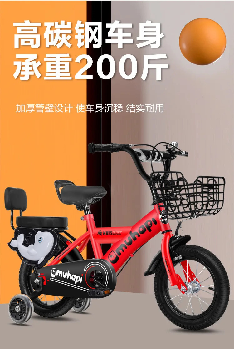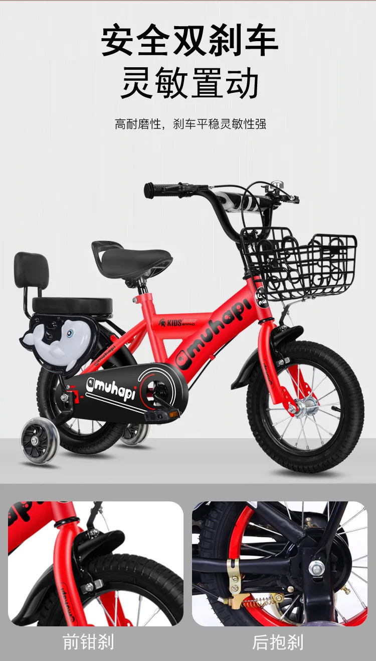JETSHARK 12-20 inches male female baby 3-5-8 years Front rear double brakes carbon steel kids bicycle with training wheels