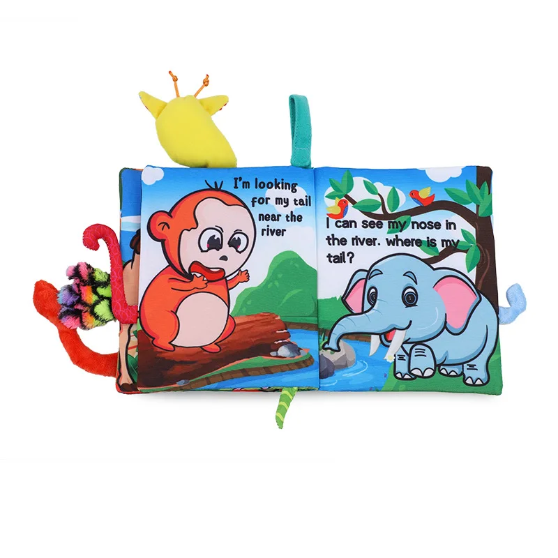 Jungle Tail 3D Beines Baby Cloth Book Set Animal Tail Cloth Book Baby Soft Cloth Book for Early Education Baby toy