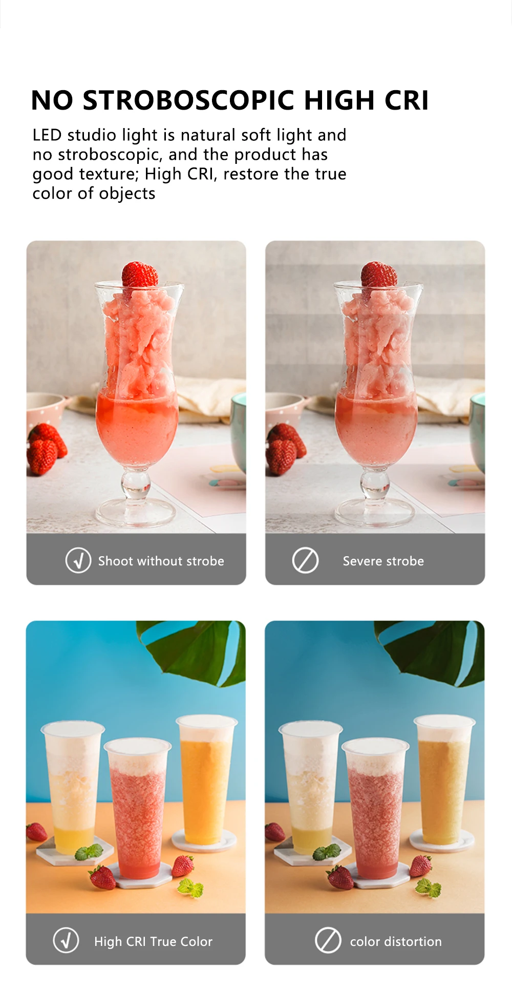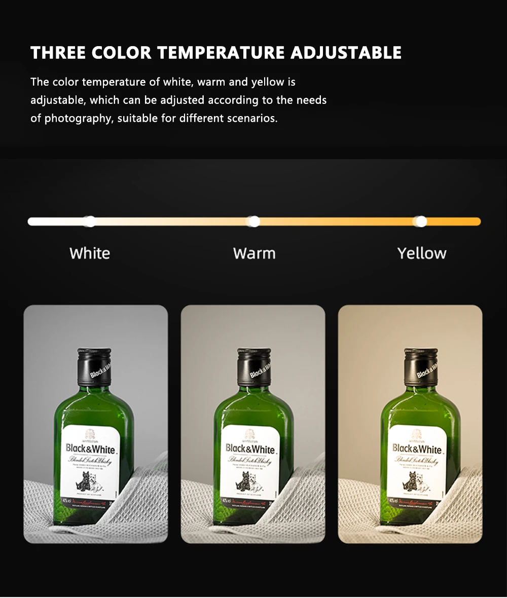 4. Portable folding magnetic circuit structure design, more convenient to install and carry, built-in led light, providing average light and prevents shadows and reflections in your photos.