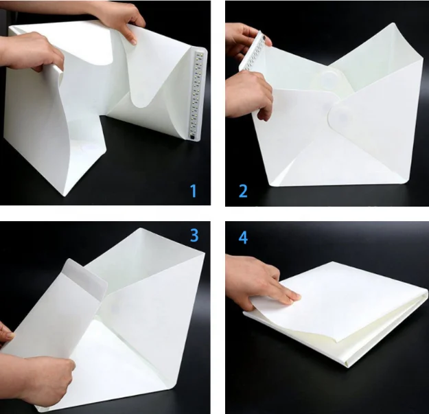 3. Assemble your own photo studio anywhere in minutes, you can unfold this LED lightbox studio and place it on any surface to get the perfect backdrop for small articles business photography, taking pictures for products.
