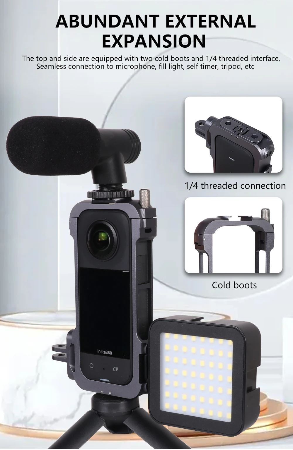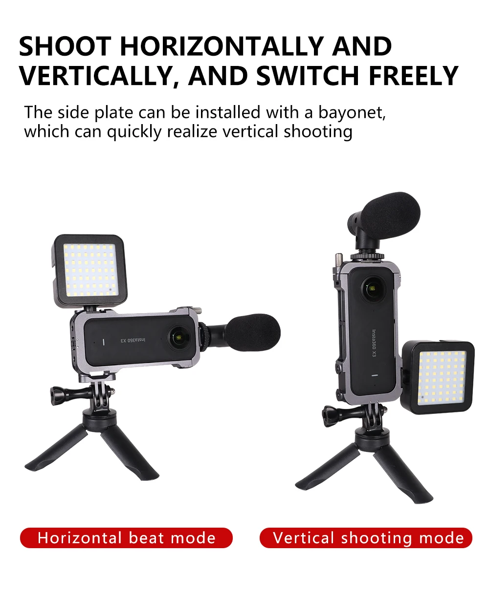 KALIOU Z050 Protective Case Rig Housing Frame and Lens protective sleeve with Cold Shoe Mounts & Magnetic For Insta360 ONE X3
