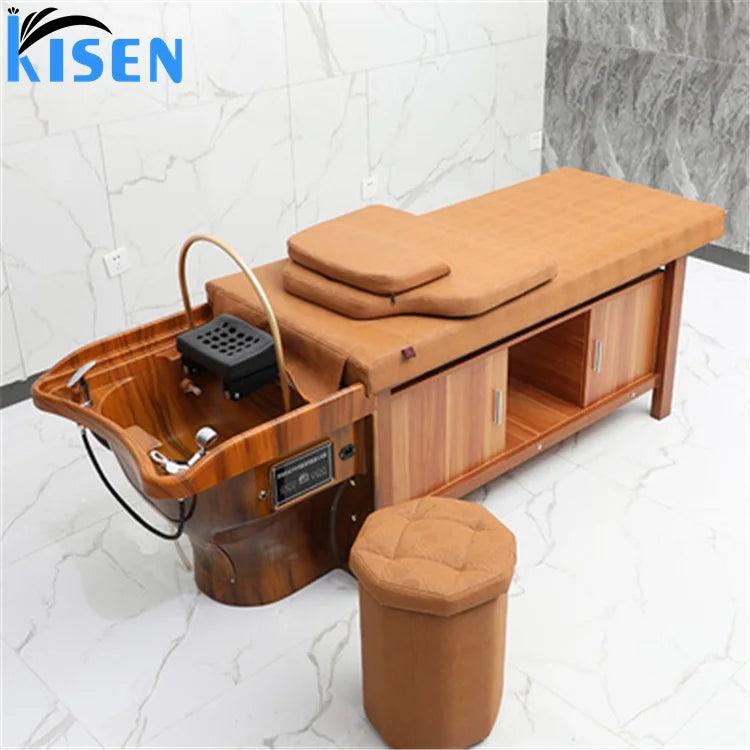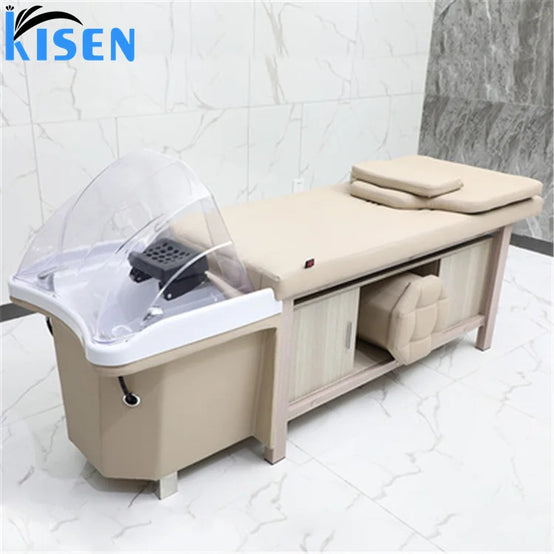 Kisen New design thai shampoo massage bed fumigable multifunctional water circulation head therapy shampoo bed