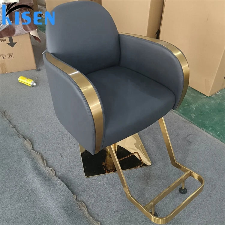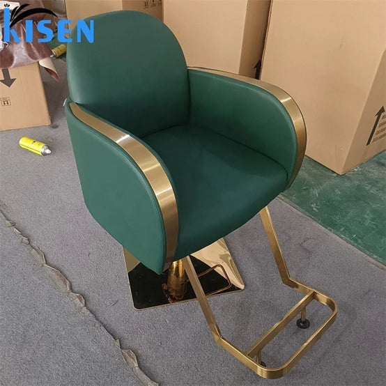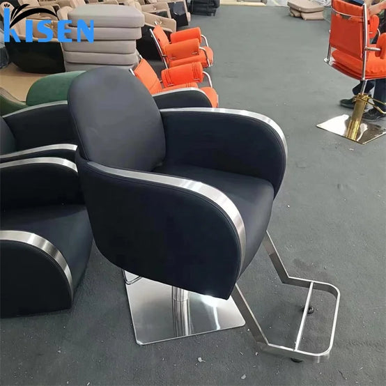Kisen salon furniture barbershop modern black green white grey hair cutting barber styling hairdresser chair with silver base