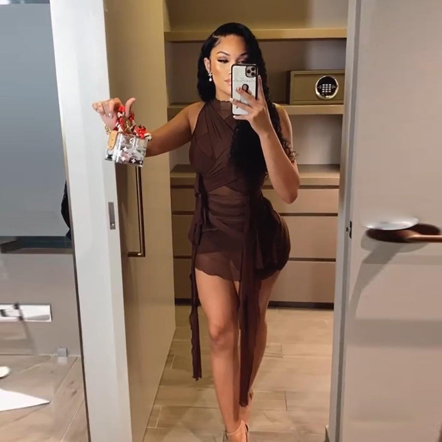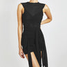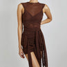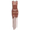 Kliou K20D10262 Ribbons Mesh See Through Tassel Solid Sleeveless Bodycon Mini Dress Women Casual Dresses