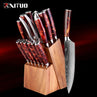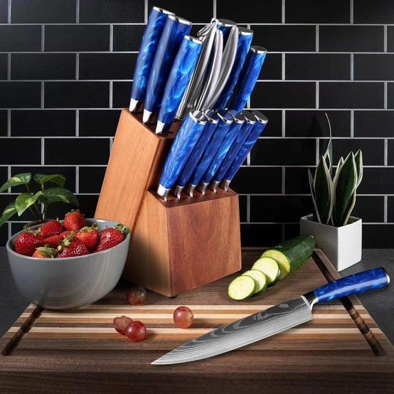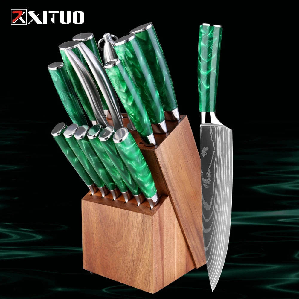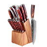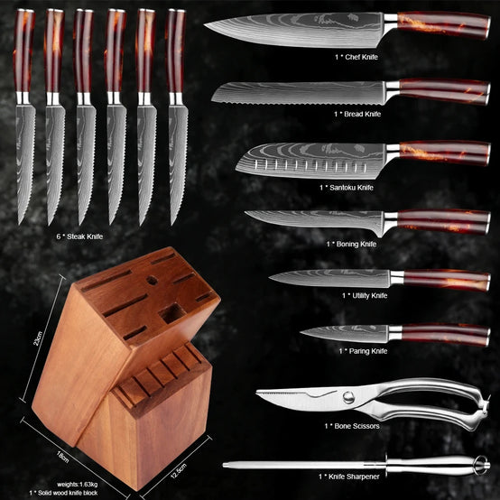 Knife Set 15-Piece Kitchen Knife Set With Wooden Block Laser Damascus Pattern Steel Pro Chef Knife With Scissor Sharpening Rod