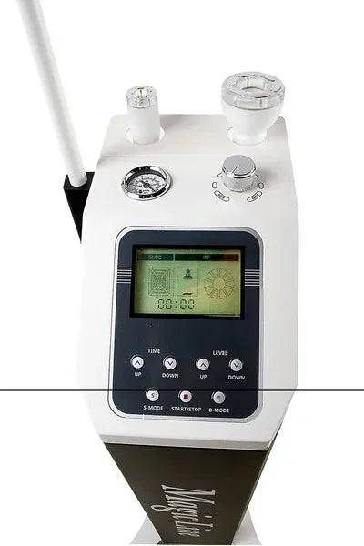 Five-polar small size RF handle with vacuum and blue LED lights.