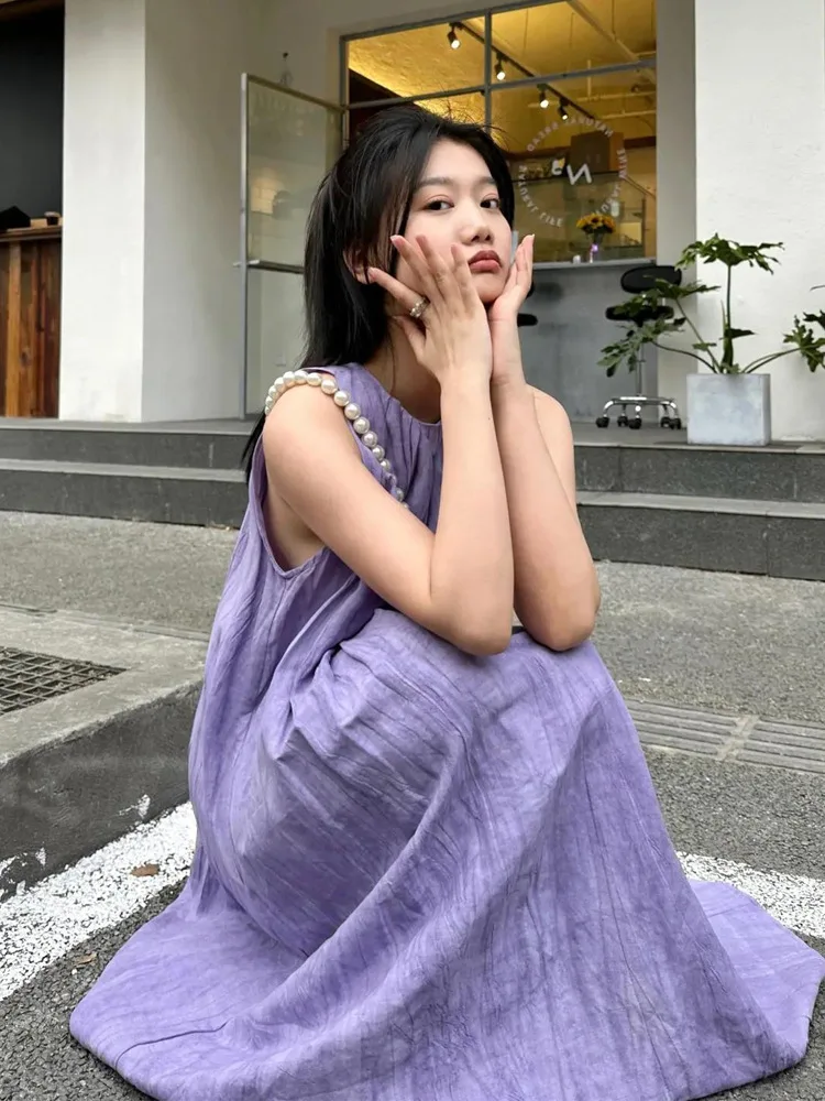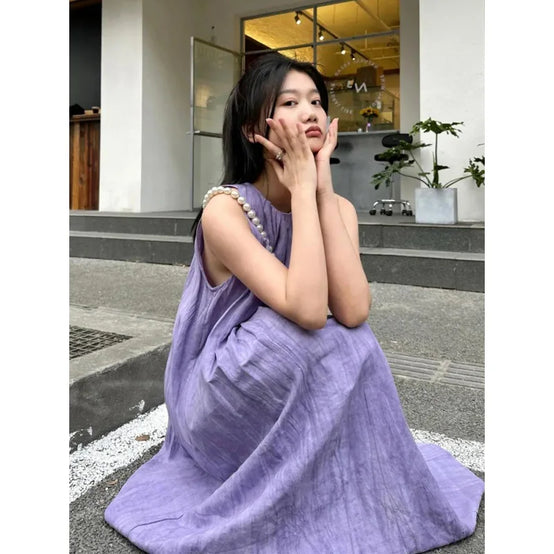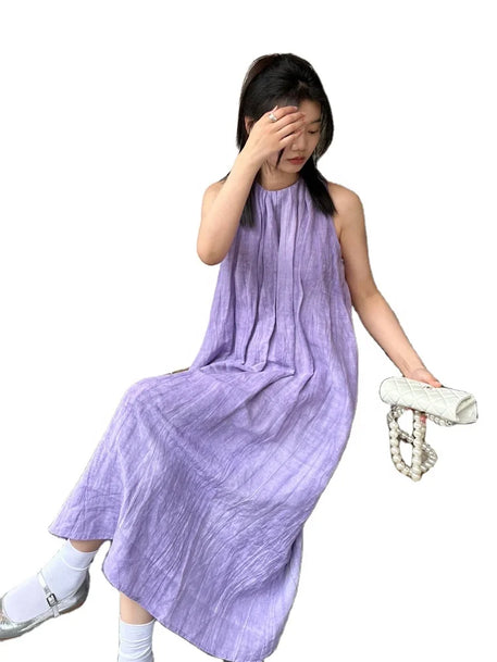 Korean Cotton Linen Dress Summer New Retro Literary Loose Large Yards Sleeveless Halter Linen Women Dress